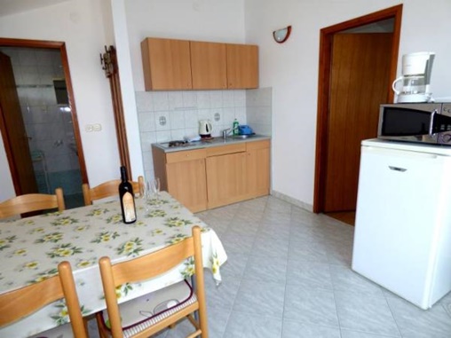 Ap3 – apartament dwusypialniany dla 4 osób na pierwszym piętrze. Dwa łóżka podwójne + kanapa w salonie. Aneks kuchenny, czajnik, mikrofalówka, stół, TV, Wi-Fi, klimatyzacja. Duży, nasłoneczniony taras – idealny na codzienny relaks.